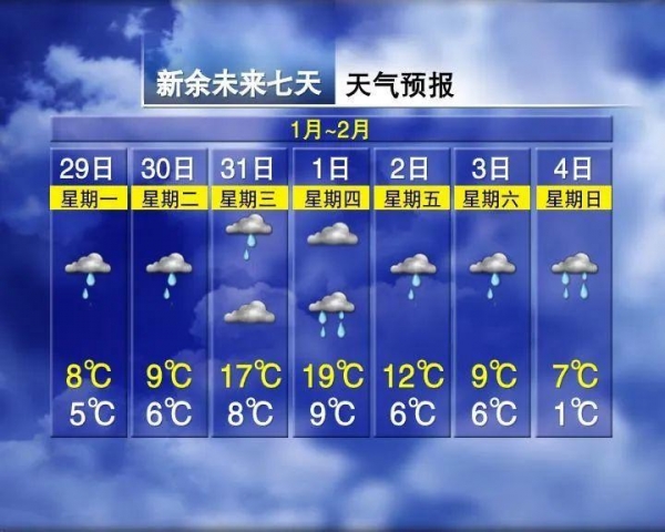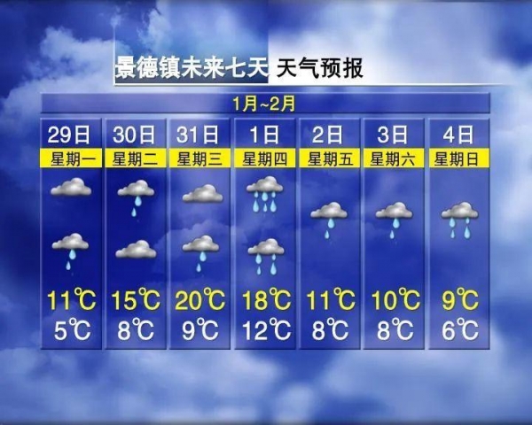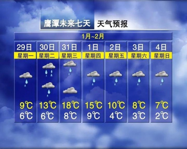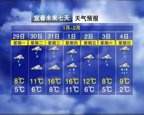 未来一周江西将经历两次降水过程,据江西气象局预计,明后两天全省有一次降水过程,2月1-4日我省有一次降温、降水过程,其中赣北、赣中局部地区有大到暴雨,上饶、景德镇、鹰潭、宜春、新余、萍乡地区几乎是天天下雨,可以说是雨一天比一天大