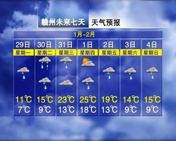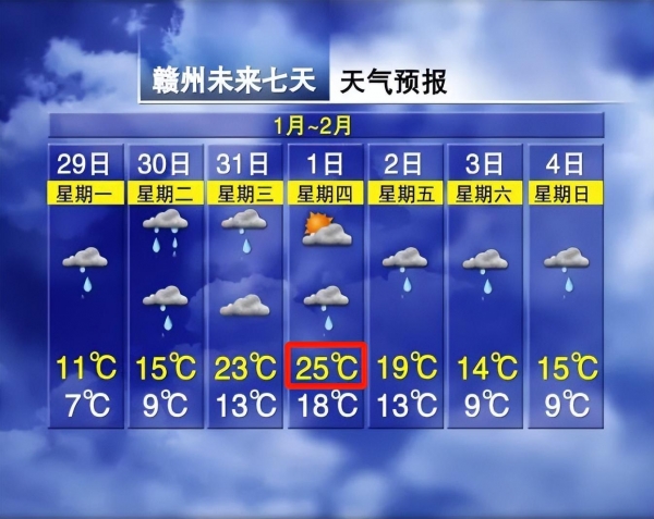 赣州气温更是一路"飙升",2月1日最高气温25℃