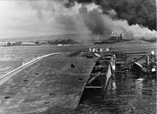 1941年12月7日,日本在毫无征兆的情况下派遣航空母舰和微型潜艇偷袭珍珠港上的美国海军太平洋舰队和海陆军的军用机场,这让毫无准备的美军溃败如山倒,战机军舰悉数被摧毁。