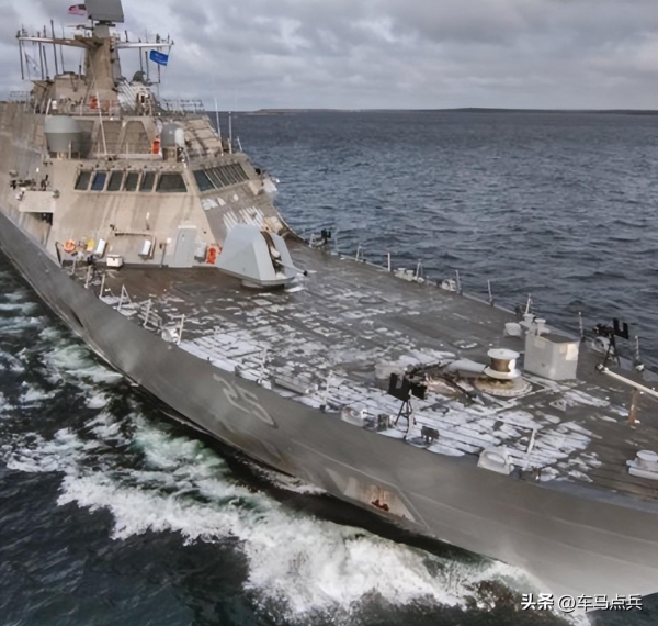 美国这次出动的是"新锐"濒海战斗舰,濒海战斗舰是一种十分先进的战舰,应该是目前为止世界上航速最快的近海战斗舰。虽然整体不是很大,但配备的武器装备却足够先进,可以搭载直升机、装甲车、小型攻击部队、小艇等。