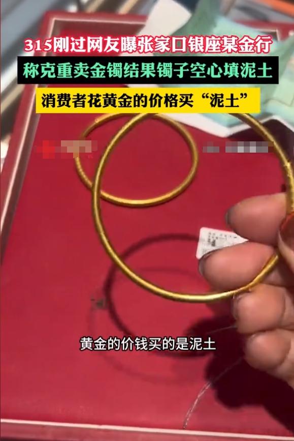 镯子买的时候,以为里面不是空心的,毕竟花费的价格在这里的,但是打开一看,竟然掉出了一些东西,竟然成了空心,按克买的,真的是太亏了。对于这件事情,她也是想要一个说法。不得不说,最近这样的事情可以说是频发,已经不是第一次了。我们常说,黄金是宝贵的,是不能造假的,可实际上,关于黄金质量的问题,越来越多了,为何会这样,我们就不得而知了。