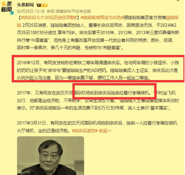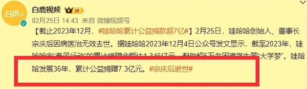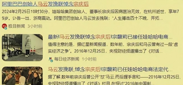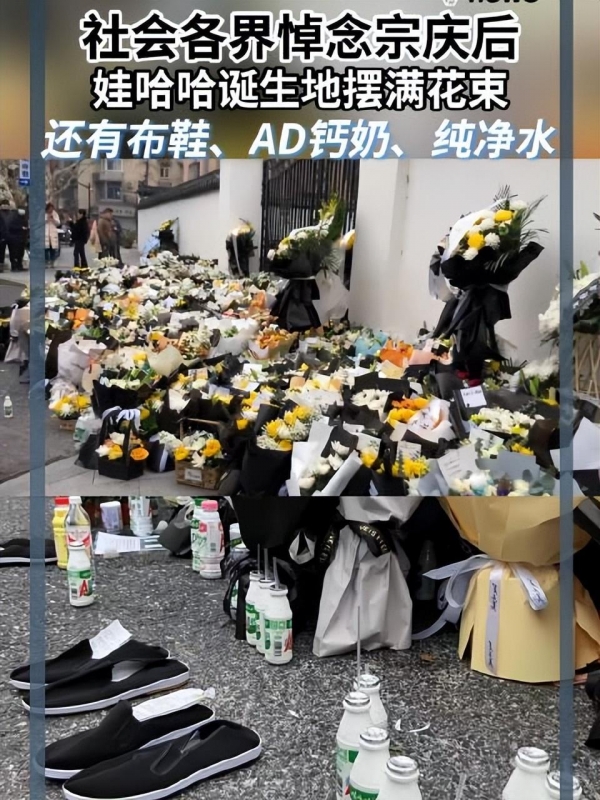 2月25日,宗老因癌症离世,社会各界人士纷纷发文悼念,宝妈、外卖小哥等等,也都来到娃哈哈门前悼念。
