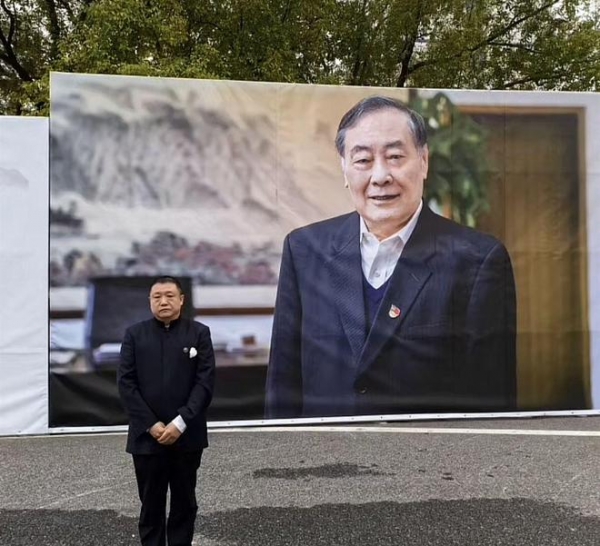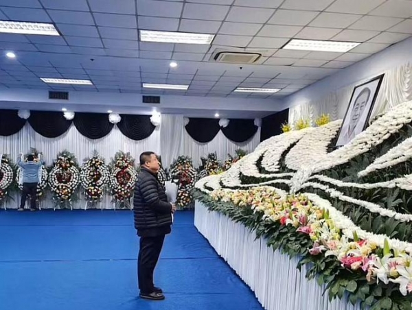 在追悼会的大厅外面,则是一张巨大的宗老的照片。