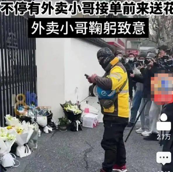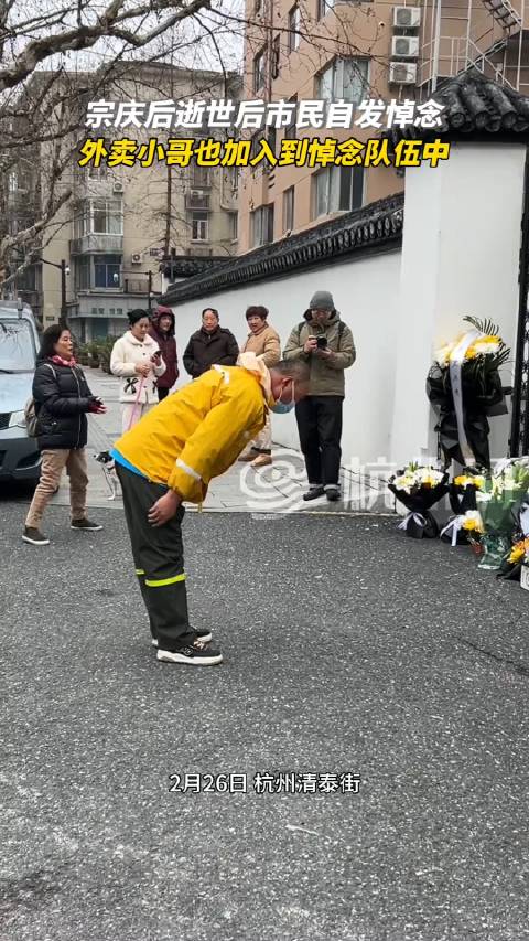 外卖小哥在送餐途中,也专门为宗老驻足停留,深深的鞠躬悼念。