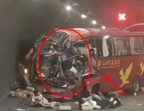 事故发生得十分突然。李强回忆道,"我们都是在迷瞪当中,听到'嘭'一声。"大巴车撞向西家塔隧道右侧,撞击发生时,他的安全带崩开,身体越过座位向前冲了三排。"撞到了额头和眼睛,身上也擦伤一些。"