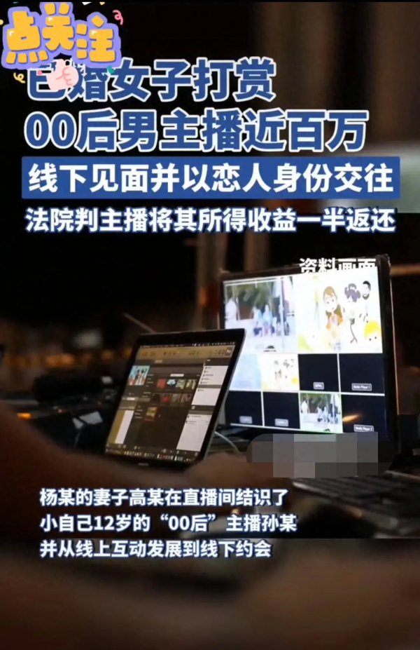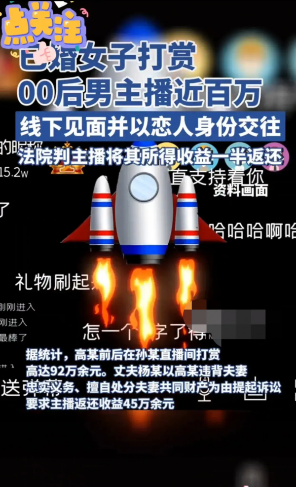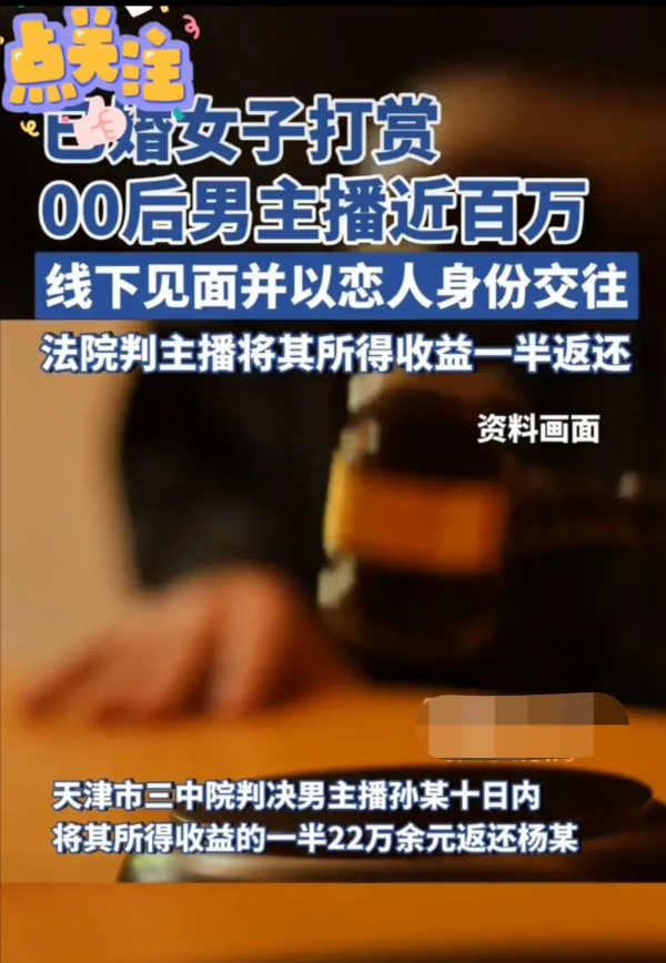 已婚女子打赏00后男主播近百万并交往,女子丈夫要求归还一半