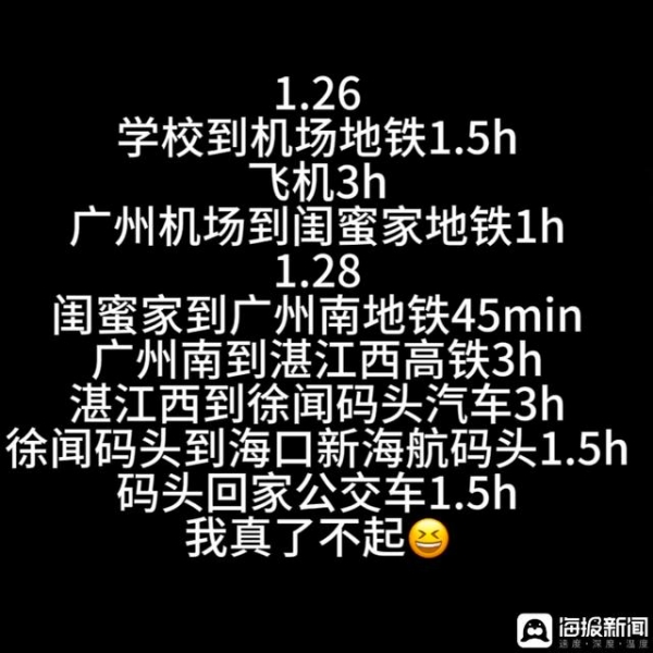 (原标题:上海一大学生辗转海陆空回海南过年,当事人:比直飞便宜一半)