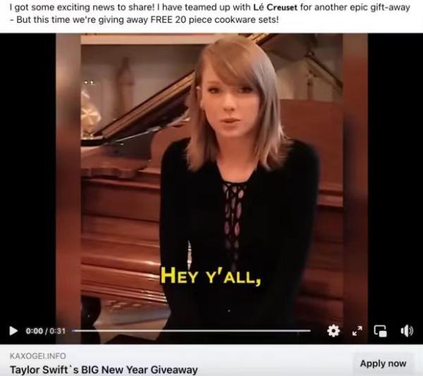事实上,视频中的"霉霉"并不是真的斯威夫特,而是AI"深度造假"技术合成了她的声音,并将声音与她的形象和Le Creuset广告片段拼凑在一起。涉事公司对此迅速做出回应称,斯威夫特没有参与任何消费者赠品活动,所有关于产品促销的活动均来自官方社交活动。