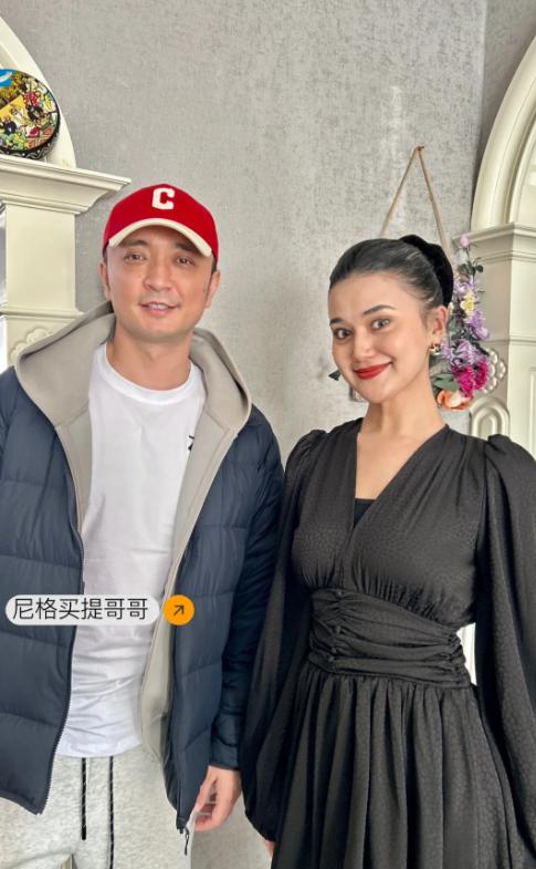 尼格买提的一家无疑全都是俊俏的人,尼格买提妹妹身穿黑色长裙,立在画面右侧,展现出完美的肩颈线条,她五官明艳大气,可谓与迪丽热巴同属一类的大美女。