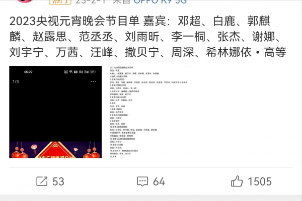 目前,网络上已经流传出来央视元宵晚会的节目单,可以明显的看到,这一次的元宵晚主要是以歌舞类节目为主,其实歌曲类节目,往往是最容易出来效果的,而且争议也会非常的少。