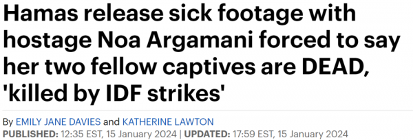 1月15日,哈马斯再次发布视频,视频中面色憔悴的诺亚对着镜头说,此前视频中的另外两人,已经死于以色列国防军的空袭。
