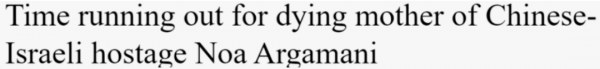 以色列总理内塔尼亚胡也曾说,他和诺亚的父母多次见面,而诺亚的华裔母亲正走向生命尽头,她不仅为女儿的生命发出祈求,而且祈求在自己有生之时能再次见到女儿一面。