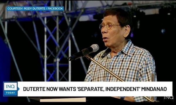据杜特尔特所说,"在经历这么多位总统之后",棉兰老岛却"没有得到任何发展","无论我们做什么,都会出现另一位糟糕的总统"。他强调:"这不是血腥的叛乱。我们将按照联合国程序收集民意签名,在宣誓后并在其他(证人)在场的情况下验证这些签名,这表明人民想要(与国家分离)。"