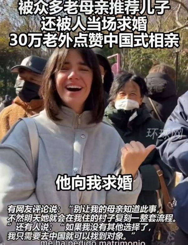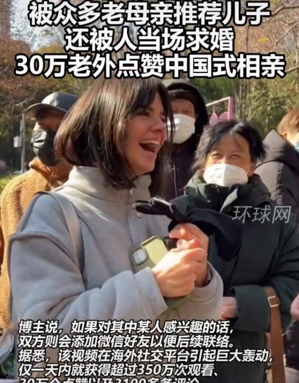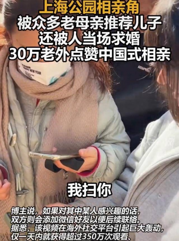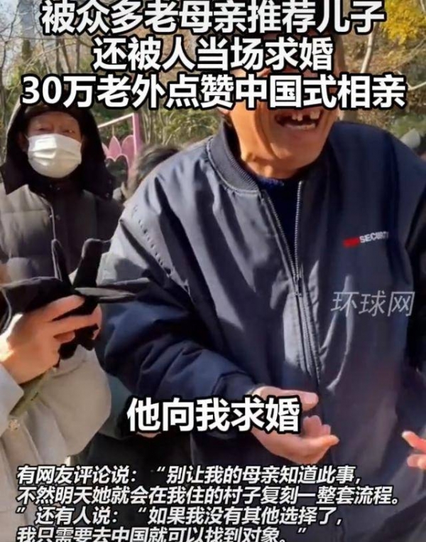 当这段视频被上传至网络后,迅速引起了广泛关注。对于很多外国网友来说,这种中国式的相亲方式新奇而有趣,甚至有人半开玩笑地表示,一定不能让自己的母亲看到这视频,以免她们也跟风来到相亲角。