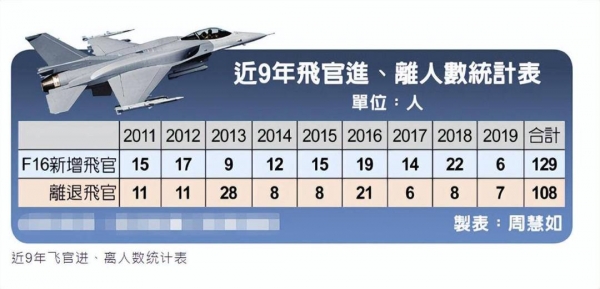 更让人不可思议的是,从2011年至2019年,这短短几年间,台军飞行员只新增129人,而退役了108人。