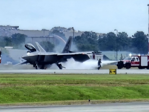 (5月6日美空军一架F-22在萨凡纳军事基地降落时坠毁)