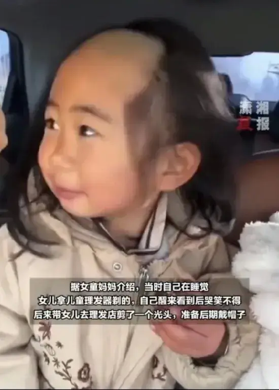 3岁萌娃趁妈妈睡觉,把自己剃成"裘千尺"。网友:发型不影响她的可爱。