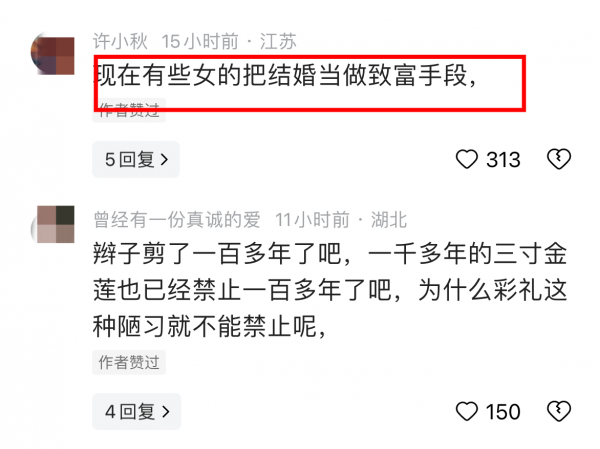 此次直播的涉嫌退还彩礼的事件,居然高达5起,不得不让人感叹,这是真的将"婚姻当成致富手段了么?"