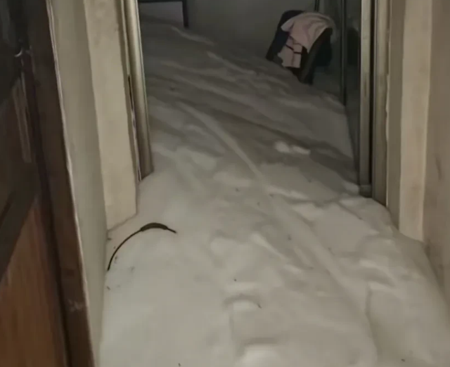 近日,暴雪侵袭湖南沅陵,一户居民晚上没有关窗户,开了一夜,第二天早上7点起来发现卫生间已经被积雪占领了,暴雪顺着窗户缝进入,一夜时间竟然形成了一座"雪山"!