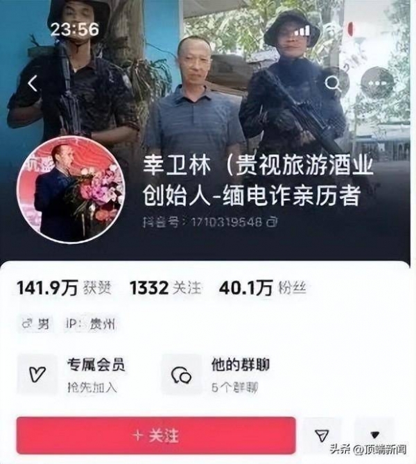 某短视频平台上,幸卫林相关的账号有三个,其中认证信息为"贵视旅游酒业创始人-缅电诈亲历者"的账号粉丝数为40万,其最早一条视频发布于2020年1月11日,视频点赞数并不高。最近一次更新是在2023年12月10日,视频内容显示幸卫林在某个签约仪式上。截至目前,该账号已搜索不到。
