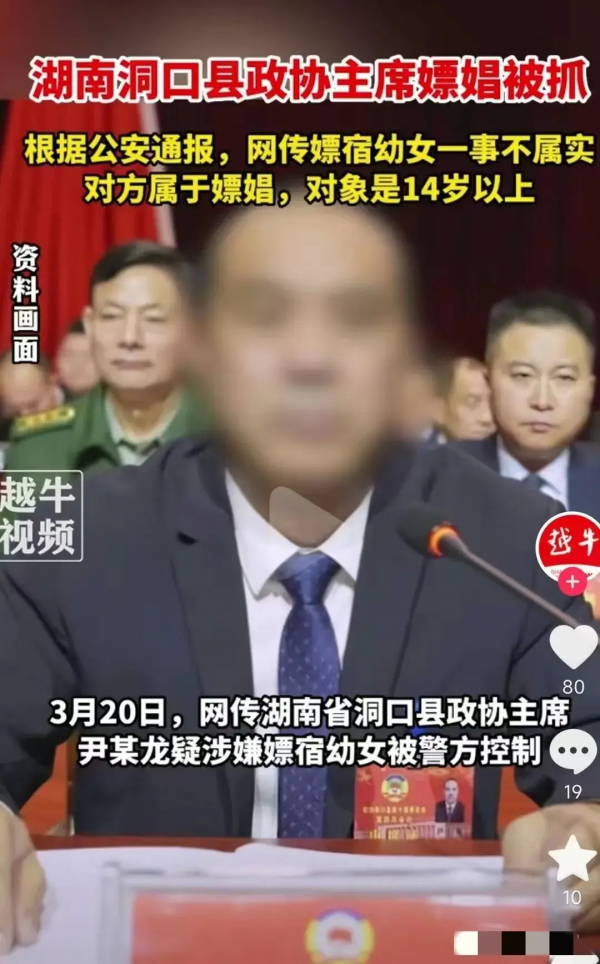 好事不出门,坏事传千里,众所周知嫖娼是违法行为做不得,现实就有这样一位公职人员,知法犯法,管不住下半身,近日湖南省洞口县政协主席疑涉嫌嫖宿幼女现被警方控制,事件在网上引起了热议。