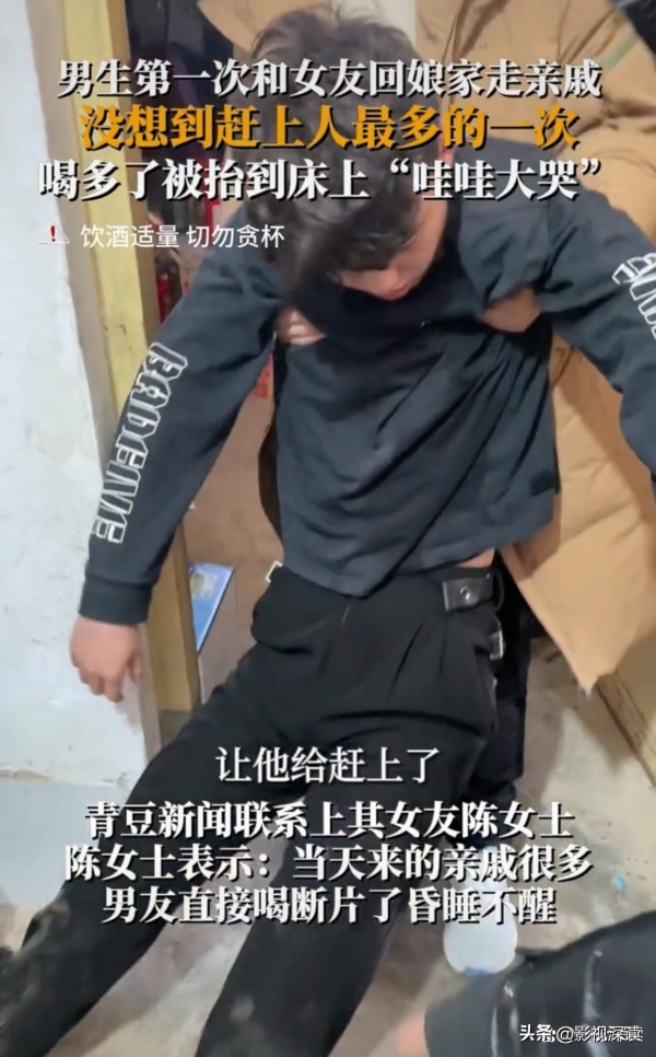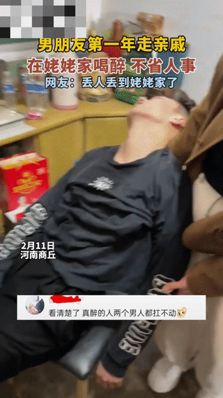 2月12日,媒体报道,河南商丘,一年轻小伙陪女友回姥姥家拜年,竟然喝得哇哇大哭,直接断片。一个人喝醉,全家人照顾,那场面笑不活了!