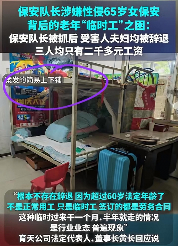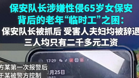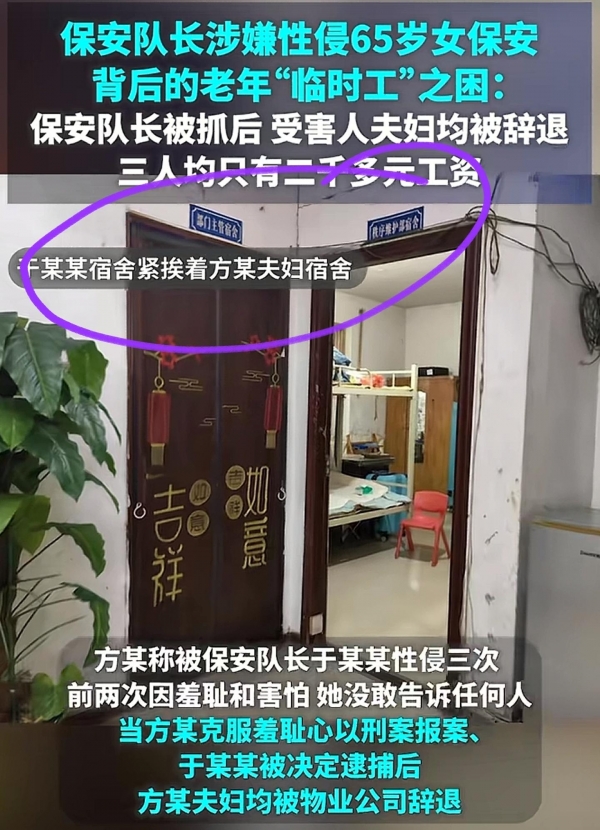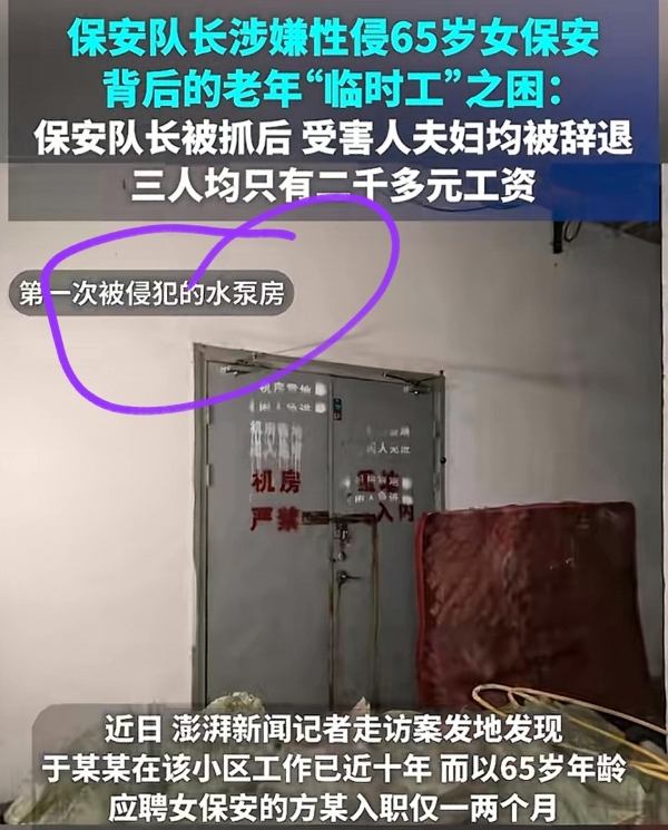 53岁保安队长涉嫌多次性侵六旬女队员被捕,受害者女儿:母亲曾椅子挡门枕下藏剪刀防身