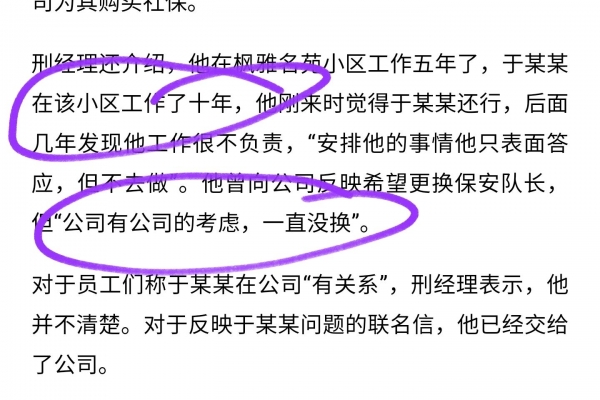 而有物业公司则表示,这个保安队长在这里工作了十年了,一直觉得还行,但这些年确实发现,他工作不负责,不过公司一直没有更换。