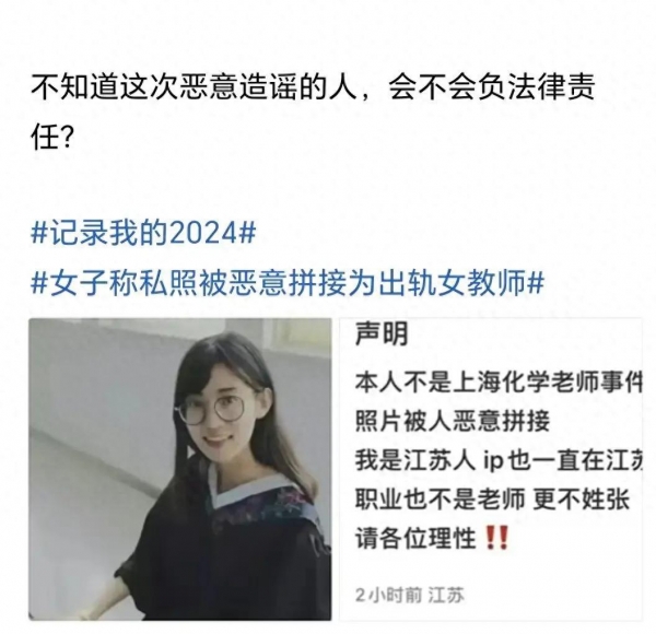 被网传成上海出轨女教师,女子辟谣:照片遭恶意拼接,不姓张