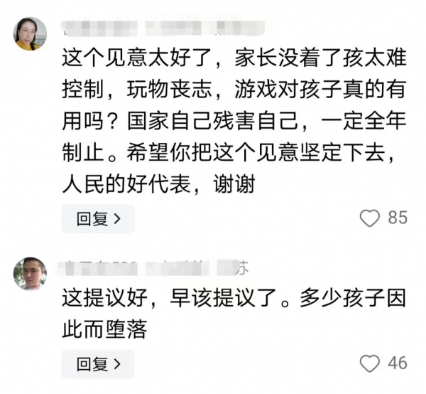 有网友表示,这个建议太好了,网友坑害了太多的孩子,早就该禁止了,相信全天下的父母都举双手双脚赞成,希望能赶快落实。