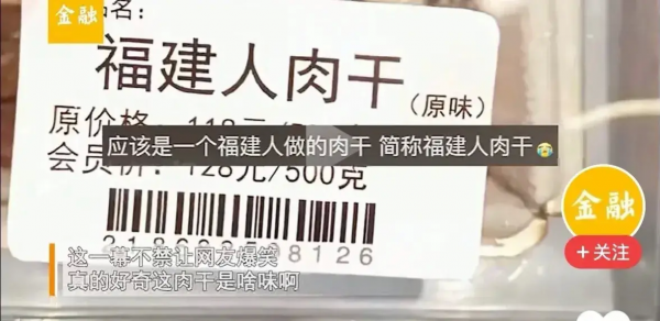 近日,一名广东女子逛特产店,发现一新奇吃食,叫"福建人肉干"!估计初看,都难以置信吧,肯定会揉揉眼,再多看两遍,再看,没错,还是那几个字,"福建人肉干"!