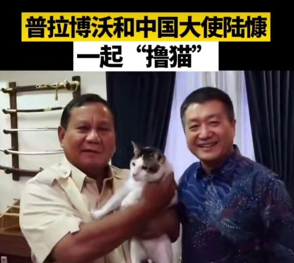 (中国驻印尼大使前往普拉博沃家里"撸猫")