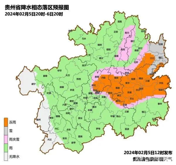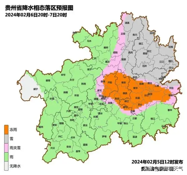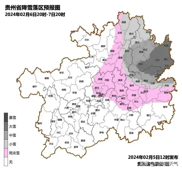 6日天气:贵州的西部地区正被多云笼罩,逐渐转变成阴天,其他地方则沉浸在小雨的滋润中。遵义市东部和南部、贵阳市中北部、铜仁市大部、黔南州北部、黔东南州中北部,他们仿佛进入了冬季的魔法,被冻雨或雨夹雪覆盖。尤其令人惊叹的是铜仁市东部、黔东南州东北部,那里的景色如诗如画,局地的小到中雪仿佛大自然的诗行,写在每一个角落。