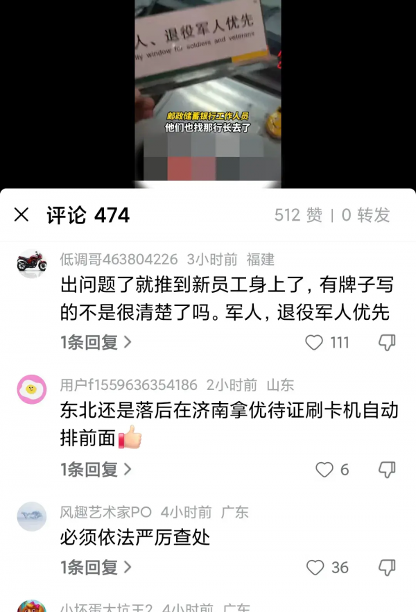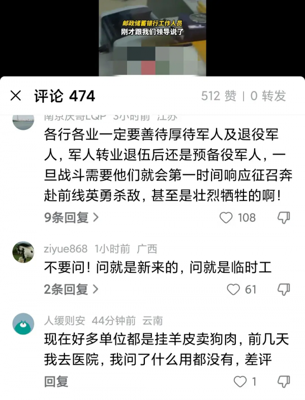 近日,一邮政银行在窗口摆放写退役军人优先的牌子却不给退役军人优先办理,还把责任推给了新人的事件在网上引发了热议,网友们纷纷替新人打抱不平,说新人躺着也无辜中枪。