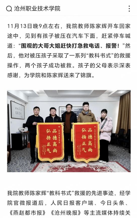 公开资料显示,陈家辉曾因为见义勇为受到表彰。