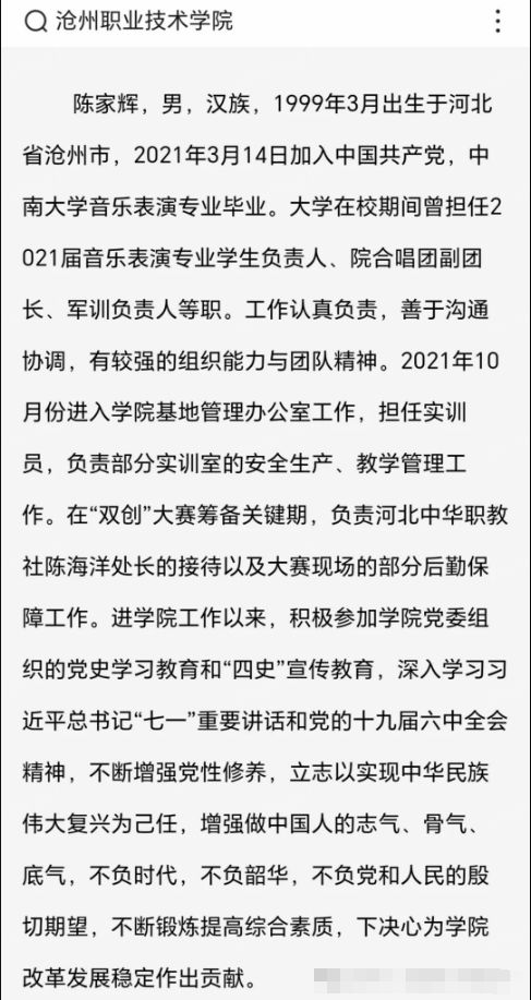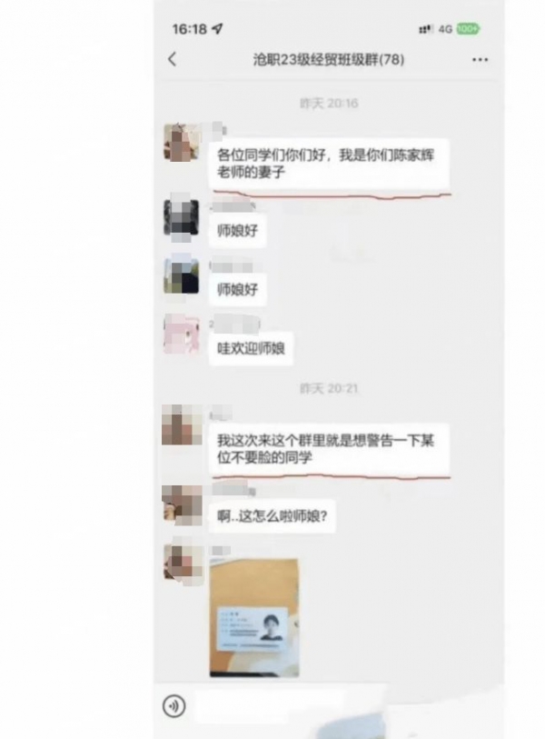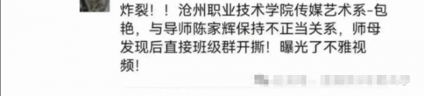 近日,沧州职业技术学院传媒艺术系陈家辉妻子在学生群爆料丈夫包养学生的事情引发关注。