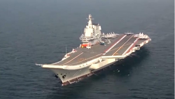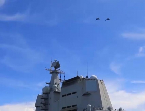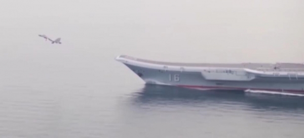 我国战机从航母上起飞进行作战飞行训练
