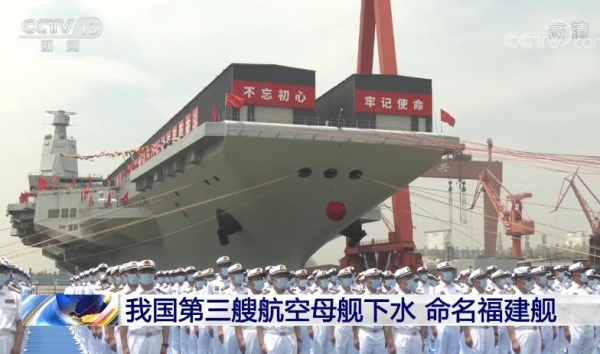 我国第三艘航母 下水,命名为"福建"舰