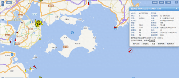 【图中红色图标船只为大陆执法船(包括海警、海巡等部门)】