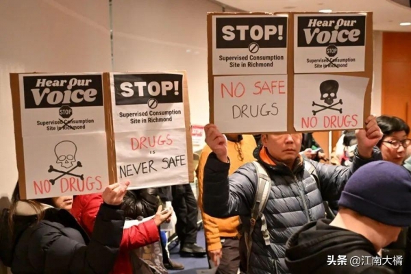 2024年2月12日晚,近千名华人聚集到列治文市政府外,现场除了华裔居民之外,也有其他族裔居民参与,大家齐呼"STOP",对列治文市政府在2月12日通过的在列治文医院设立"毒品注射屋"提案表达强烈的抗议和不满。