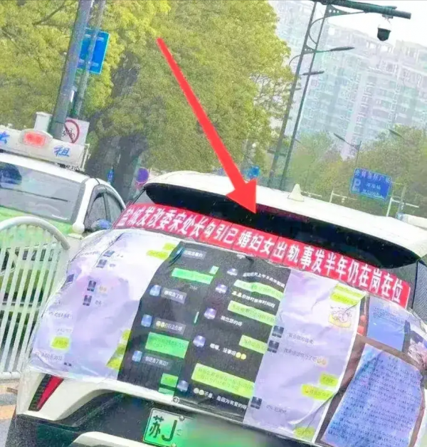 这位老人表示,自从得知儿媳韩某与宋处长有不当关系后,他已向相关部门报告了这一情况。然而,在长达8个月的时间里,他未曾收到任何形式的回应。感到无助的他决定通过网络公开这一事件,并将涉及到的开房记录、聊天截图和韩某的手写保证书等打印成海报,张贴在自己的车尾。