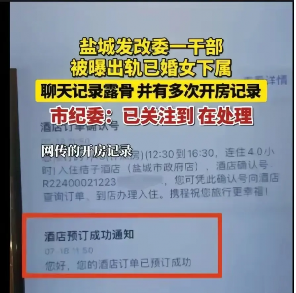 此外,涉事的开房记录也被曝光,显示两人于2023年7月18日下午在附近的桔子酒店入住了一间4小时的钟点房。时间安排在工作时间内,这意味着宋处长利用上班时间进行私事,引发了更多的质疑。