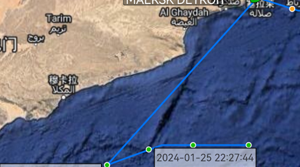 【马士基底特律号商船的AIS航线图】