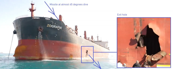 毕竟对于尺寸超过300米的"马士基·底特律号"来说,100米的导弹落点完全可以算得上的"差点被打中"。但凡导弹再准一点,它那超过7万吨的船体上就得像"佐格拉菲亚号"货轮一样多一个肉眼可见的洞。