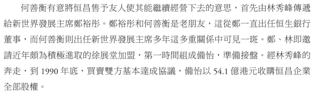 ▲ 何善衡对林氏后人一向是多有照拂,"只要有我一日,我都不会让炳哥的后人陷入困境",加上何善衡与郑裕彤一直有密切的商业合作,这项收购计划本已是板上钉钉的事。