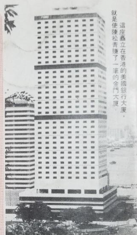 1980年1月,陈松青豪掷近10亿港元拿下整栋金门大厦,一时声名大噪。
