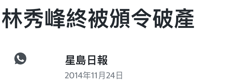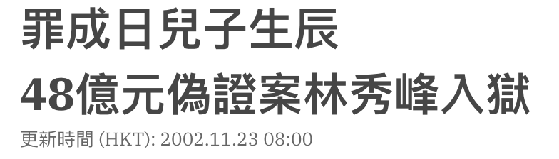 ▲ 2002年11月,林秀峰在区域法院被裁定两项行使虚假文书副本罪成,被判入狱20个月。