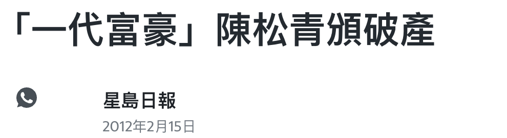 不过陈松青还是一以贯之的老赖做派,在法庭上抵死不认账,判决之后抵死不还钱。与他积怨甚深的林秀峰也是铁了心的要把他逼到绝路。2012年,在林秀峰的坚持下,香港高院向陈松青颁下破产令。
