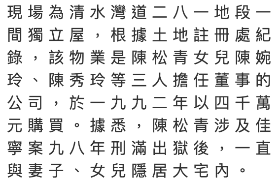 据说陈松青在出狱后手里仍有数间公司,经营投资及地产业务,股权挂靠在女儿名下,与妻女共同隐居在香港清水湾的大宅中,作风比从前更低调、更神秘。