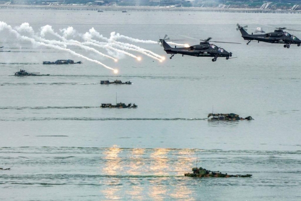 (解放军正在东海方向演练两栖登陆)